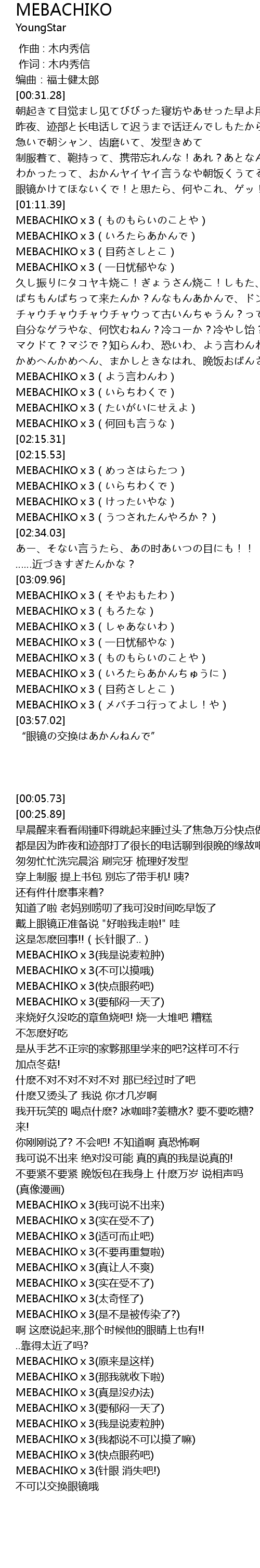 | [03:33.65] | MEBACHIKOx3(一日忧郁やな) |