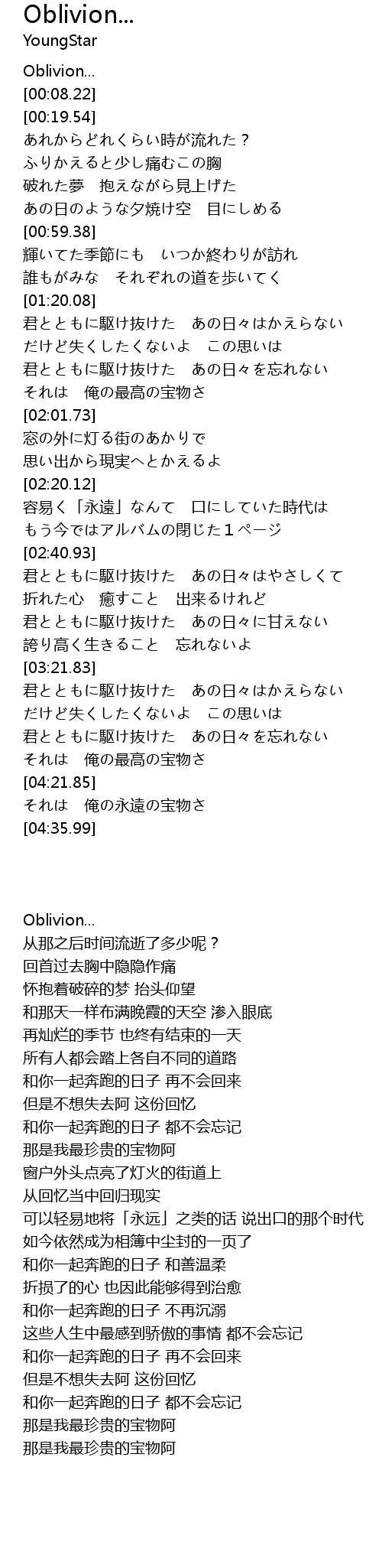 | [04:22.36] | それは 俺の永遠の宝物さ |