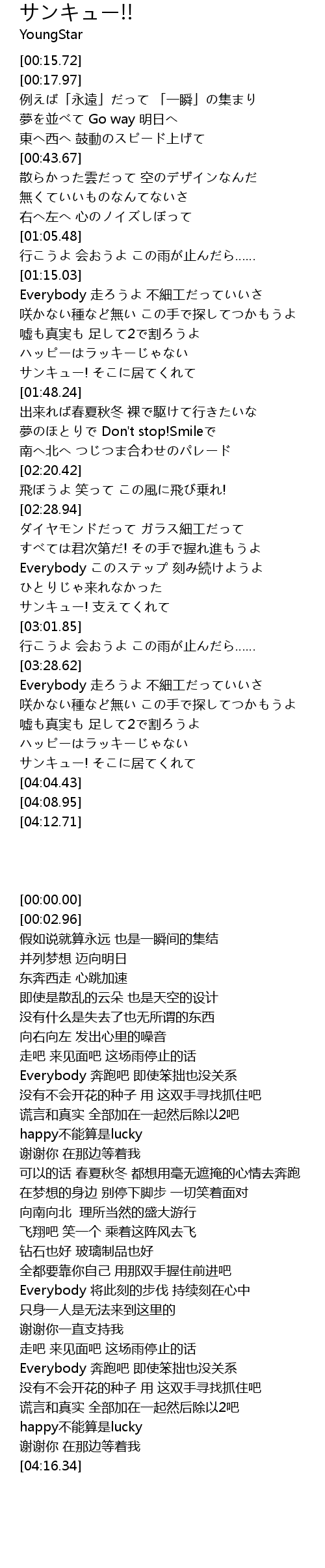 | [03:57.84] | サンキュー! そこに居てくれて |