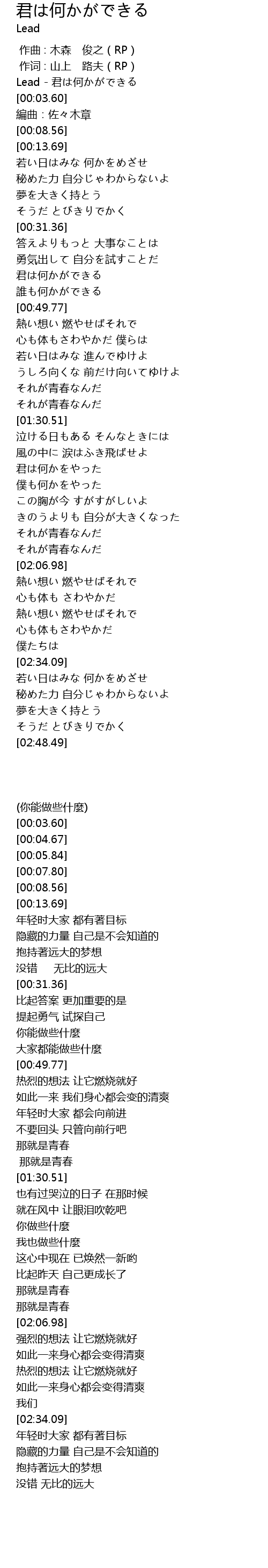 | [00:01.80] | Lead - 君は何かができる |