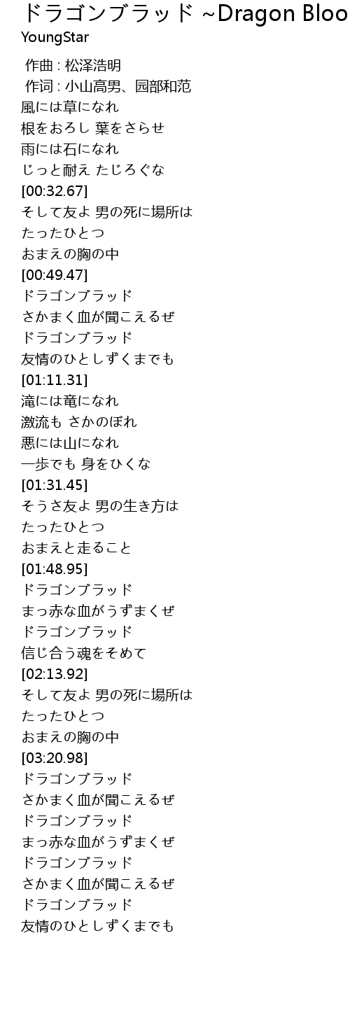 | [03:25.94] | さかまく血が聞こえるぜ |