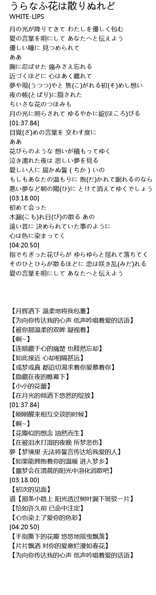 | [01:25.67] | 月の光に照らされて ゆるやかに綻(ほころ)びる |