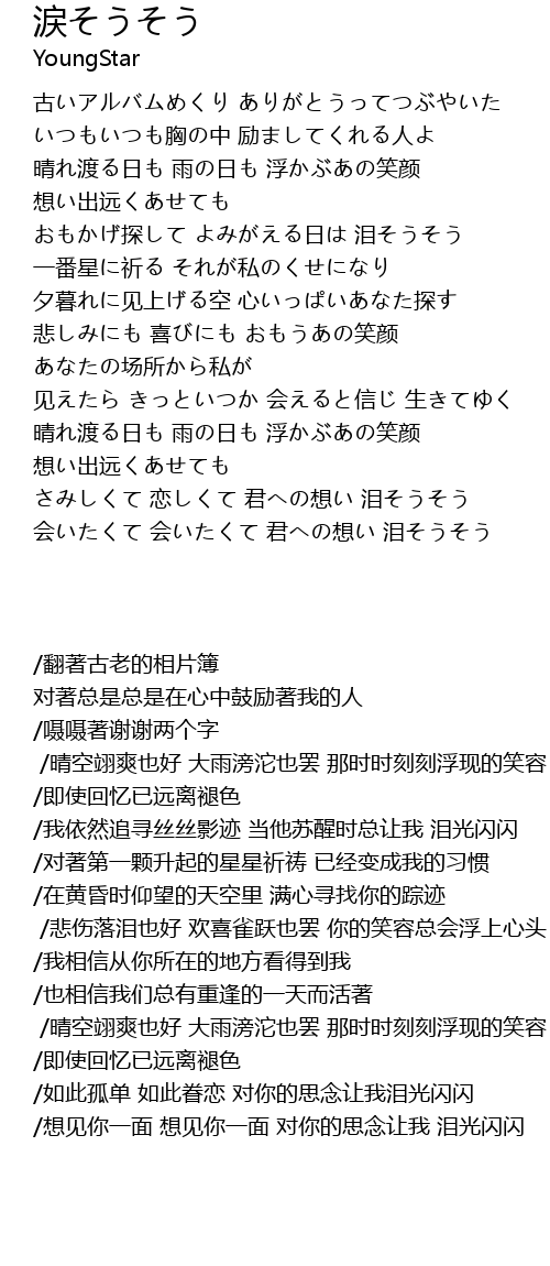 | [03:22.40] | 会いたくて 会いたくて 君への想い 泪そうそう |