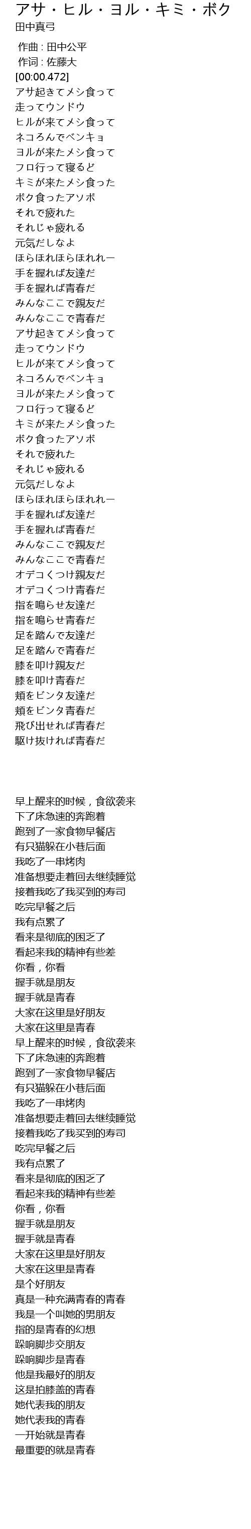 | [00:03.664] | アサ起きてメシ食って |