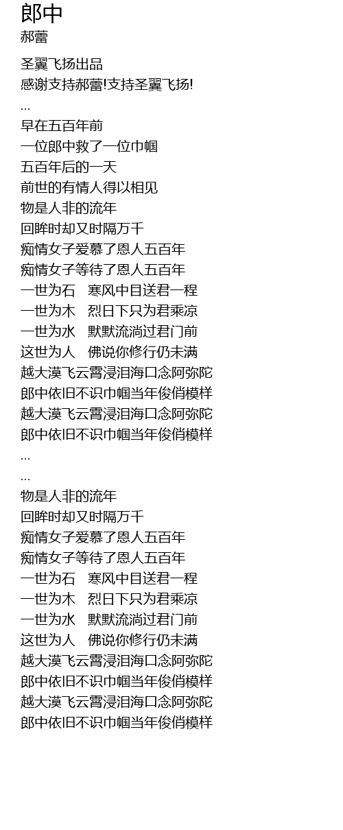 | [00:37.03] | yi wei lang zhong jiu le yi wei jin guo |