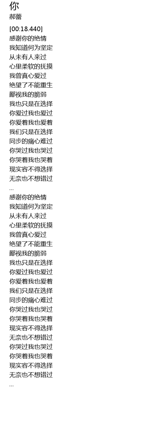 | [01:42.680] | wú nài yě bù xiǎng cuò guò |