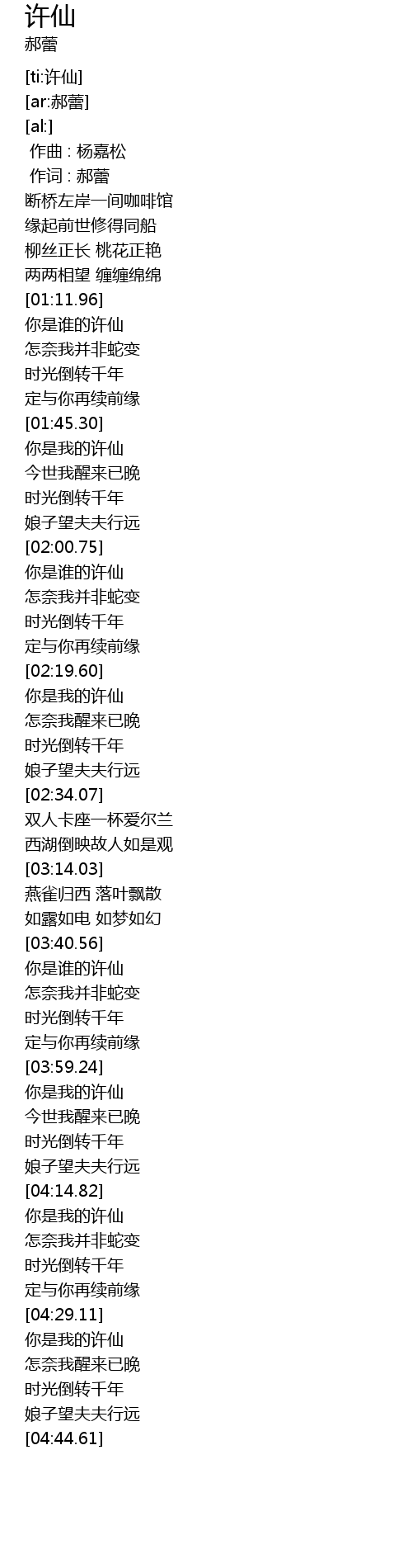 | [03:45.63] | nǐ shì shuí de xǔ xiān |