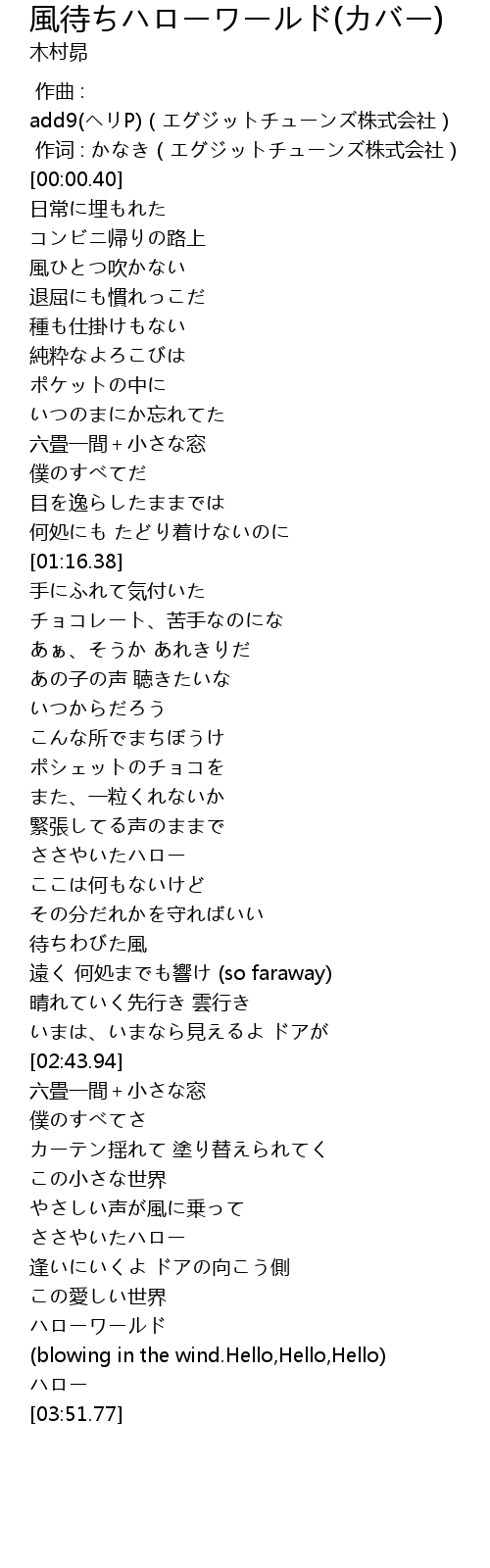 | [00:00.000] | 作曲 : add9(ヘリP)(エグジットチューンズ株式会社) |