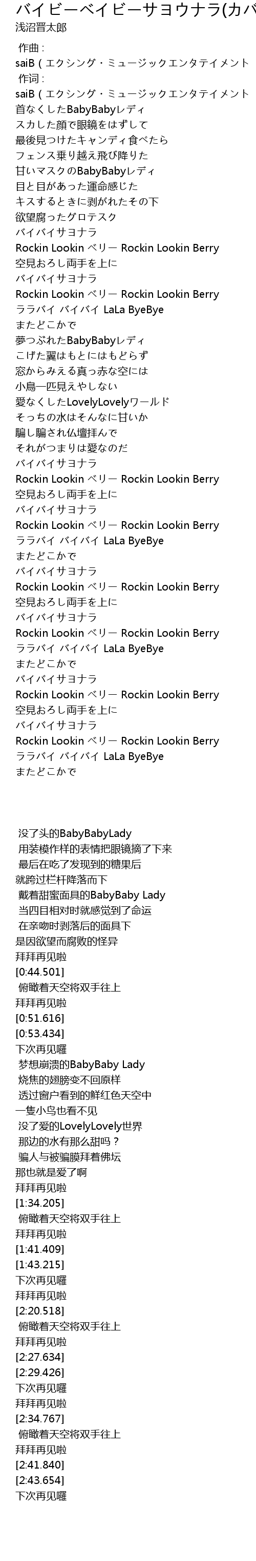 | [2:40.157] | バイバイサヨナラ |