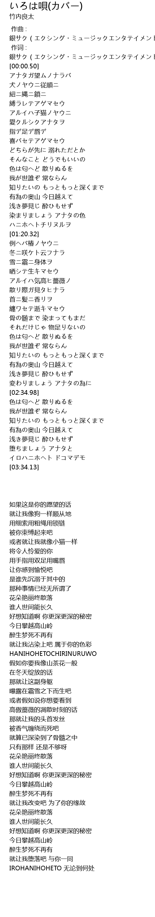 | [01:14.60] | ハニホヘトチリヌルヲ |