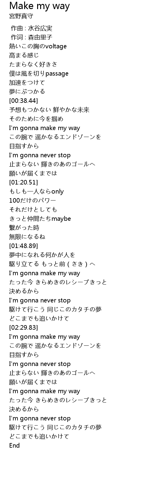 | [03:08.03] | 止まらない 輝きのあのゴールへ |