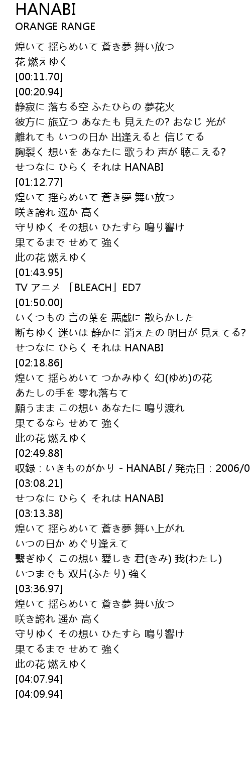| [03:10.21] | せつなに ひらく それは HANABI |