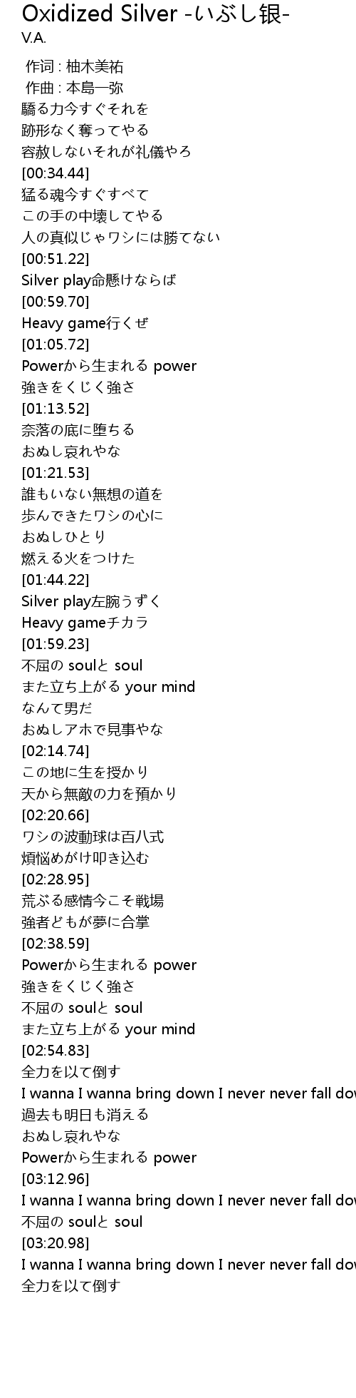 | [03:17.11] | 不屈の soulと soul |