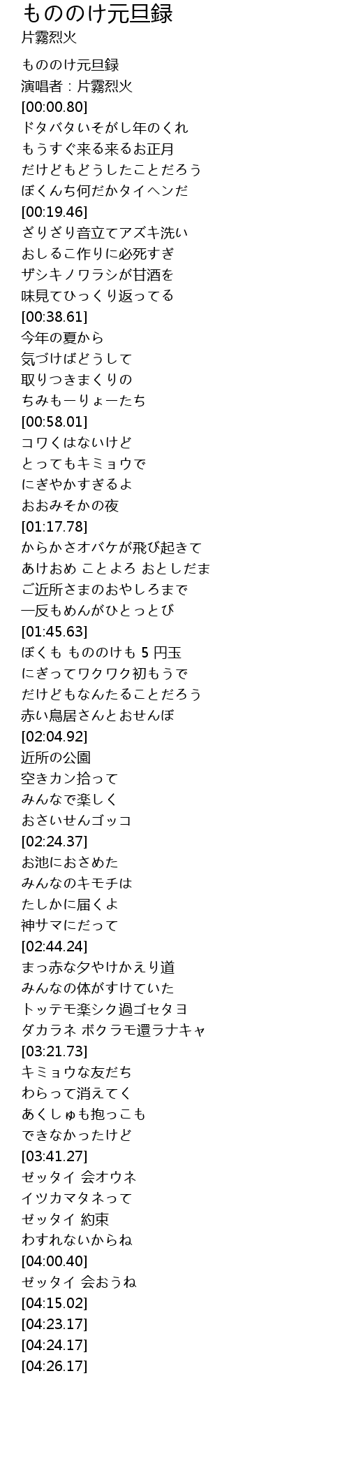 | [01:31.95] | あけおめ ことよろ おとしだま |