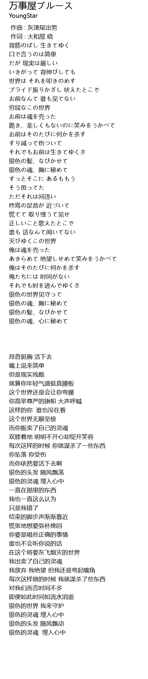 | [00:01.00] | 作词 : 大和屋 晓 |