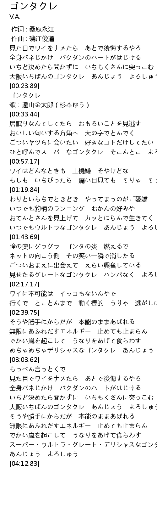 | [04:06.79] | スーパー・ウルトラ・グレート・デリシャスなゴンタクレ |