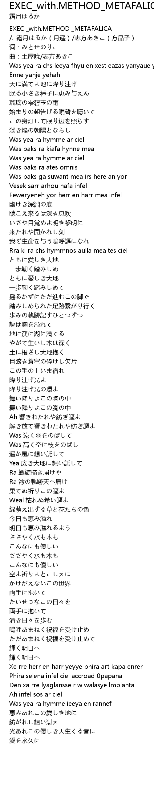| [00:00.00] | EXEC _with.METHOD _METAFALICA /.-霜月はるか(月遥)/志方あきこ(方晶子) |