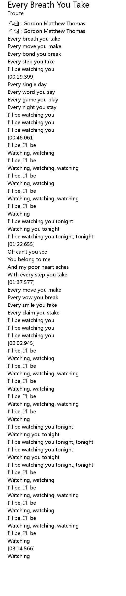 | [00:06.209] | Every breath you take |