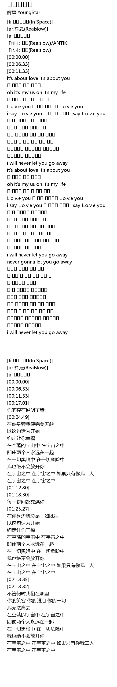 | [00:45.57] | 텅 빈 우주에서 우주속에서 |