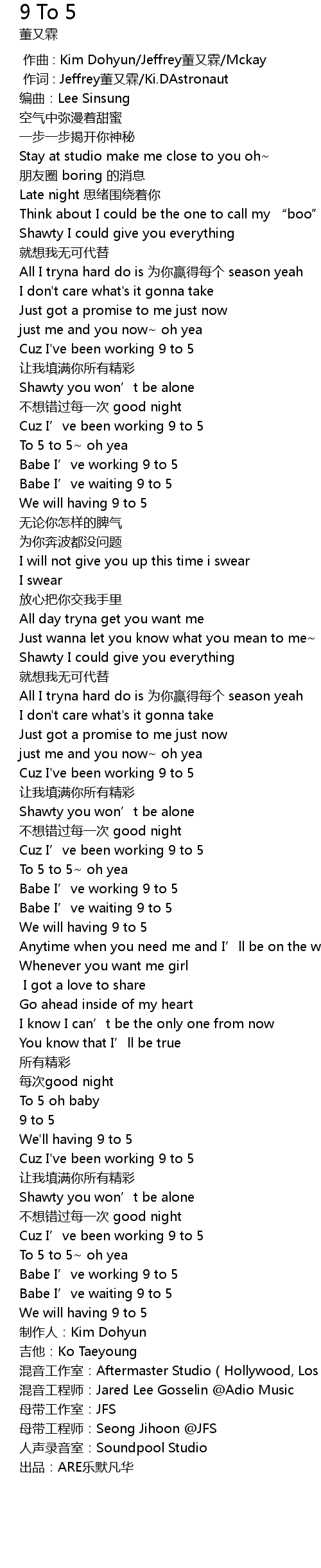 | [00:52.91] | Cuz I've been working 9 to 5 |