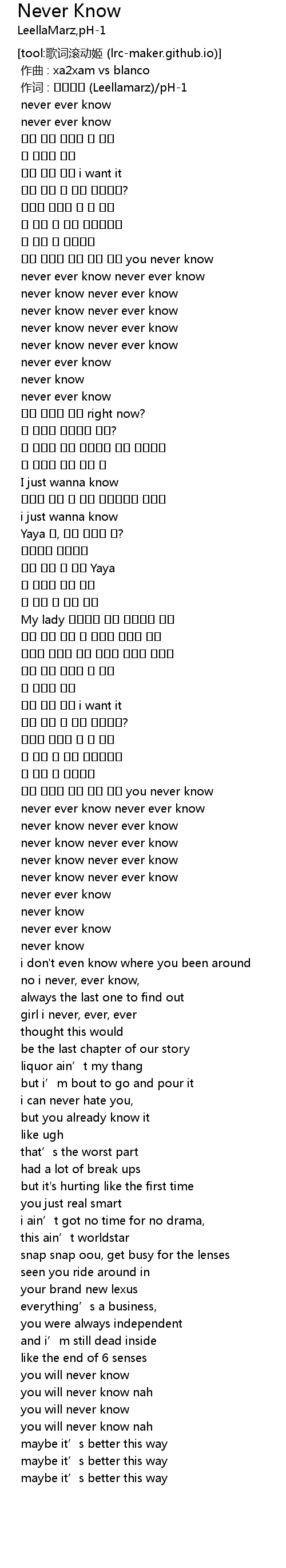| [00:01.000] | zuò cí : Leellamarz pH1 |
