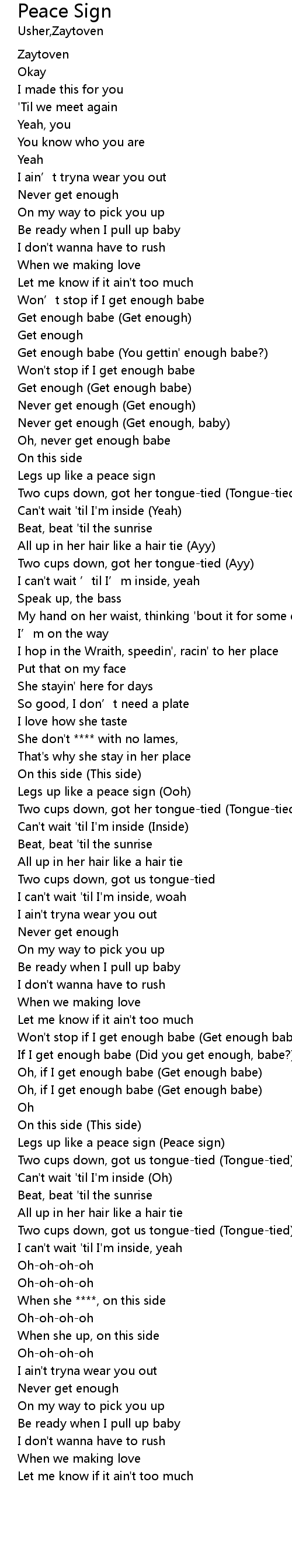 | [00:38.72] | Won't stop if I get enough babe |