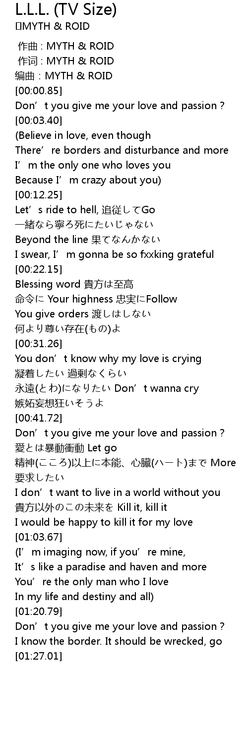 | [00:42.69] | Don' t you give me your love and passion? |
