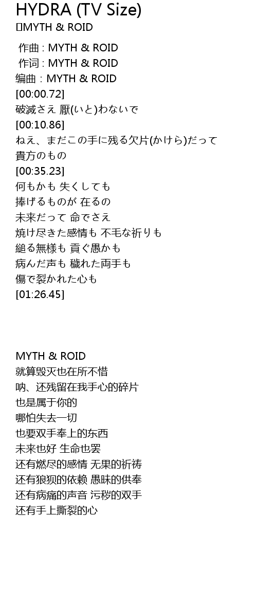 | [00:00.50] | biān qǔ: MYTH ROID |