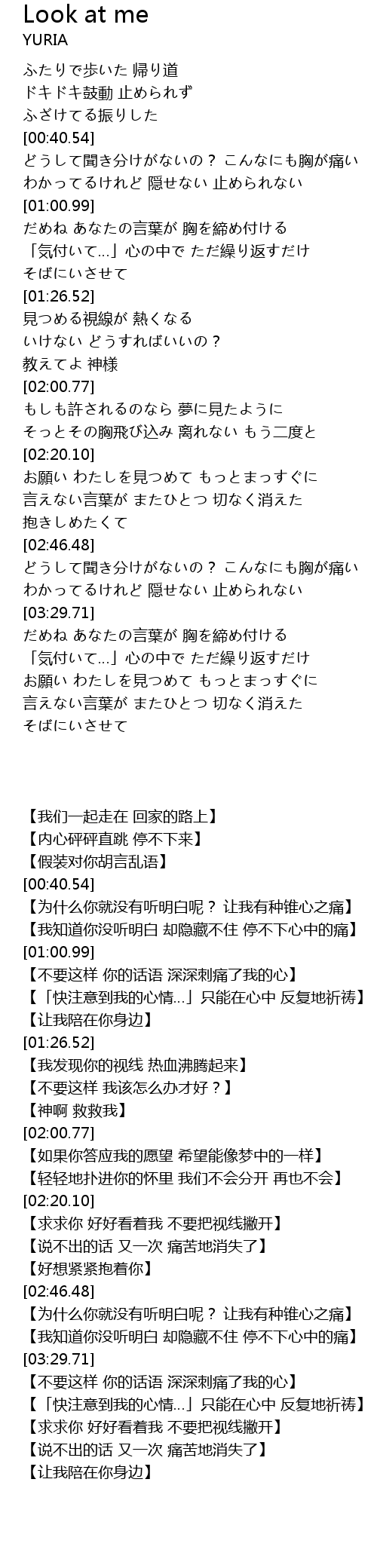 | [03:51.74] | お願い わたしを見つめて もっとまっすぐに |