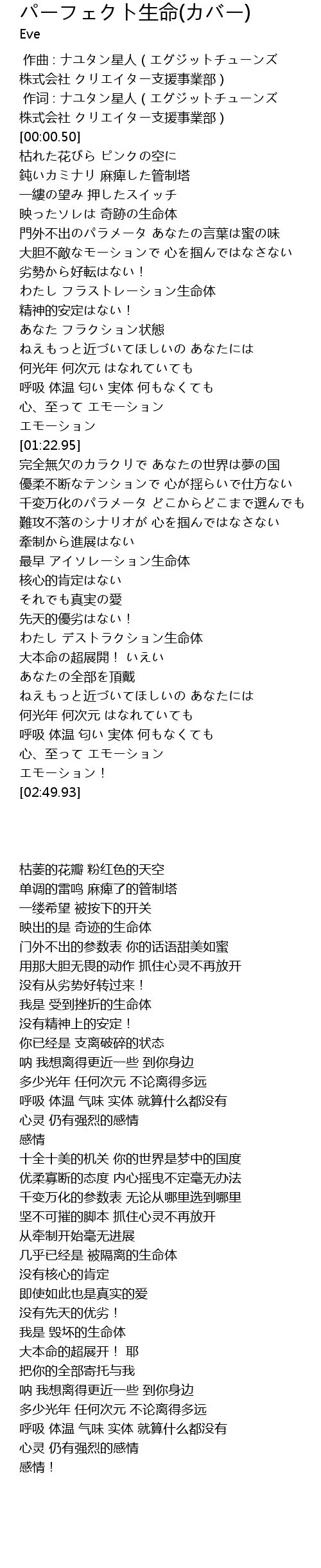 | [02:13.86] | わたし デストラクション生命体 |