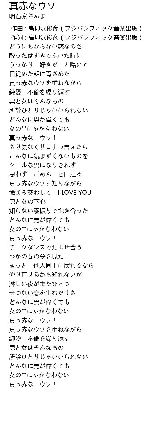 | [00:43.820] | 真っ赤なウソを重ねながら |