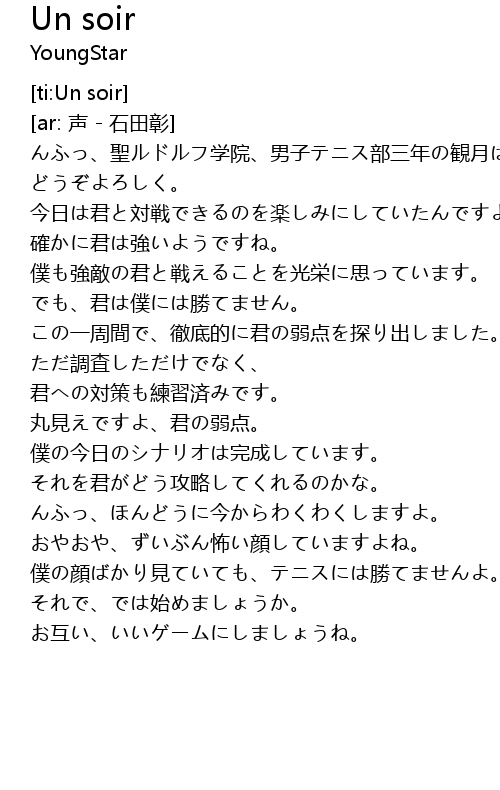 | [01:34] | 僕の顔ばかり見ていても、テニスには勝てませんよ。 |
