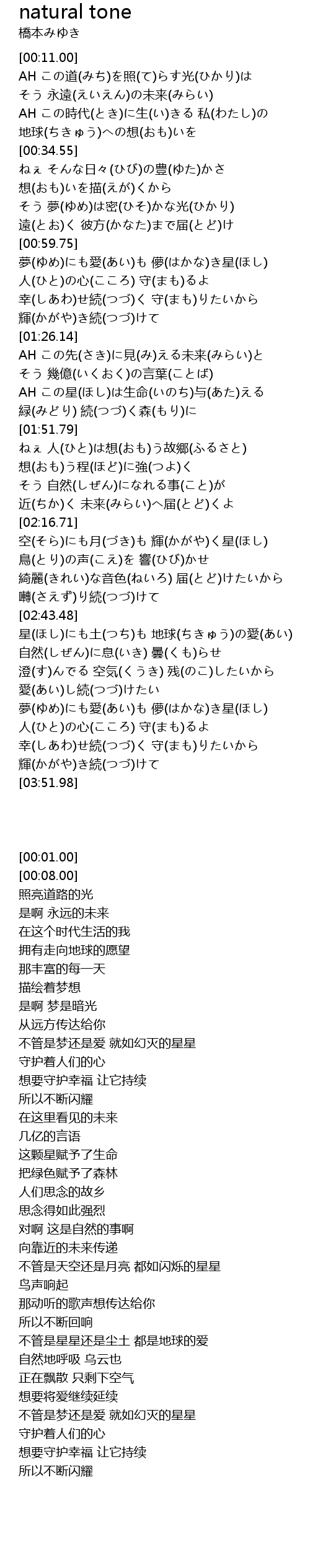 | [01:40.83] | AH この星(ほし)は生命(いのち)与(あた)える |
