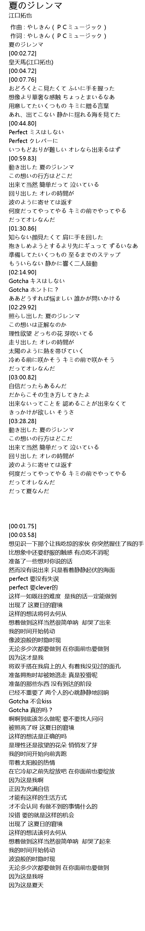 | [02:30.07] | 照らし出した 夏のジレンマ |