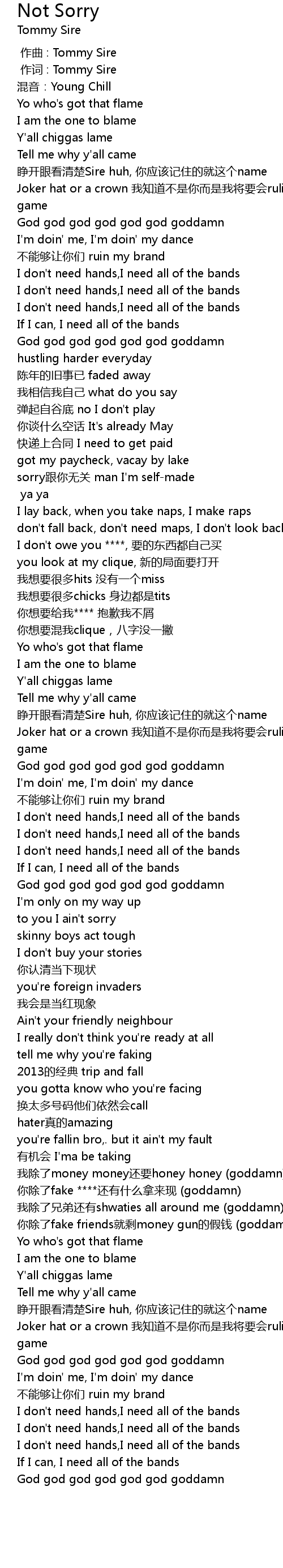 | [00:51.01] | sorry gēn nǐ wú guān man I' m selfmade |