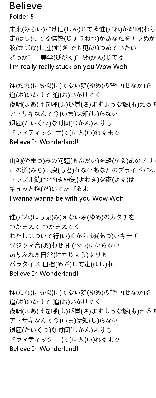 | 未来(みらい)だけ信(しん)じてる谁(だれ)かが嘲(わら)ってもかまわない | |