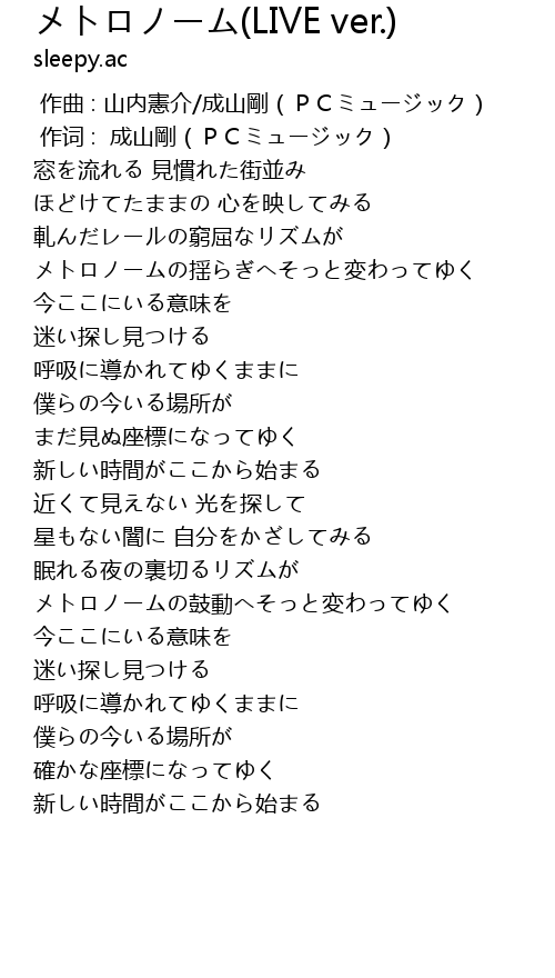 | [01:01.53] | メトロノームの揺らぎへそっと変わってゆく |