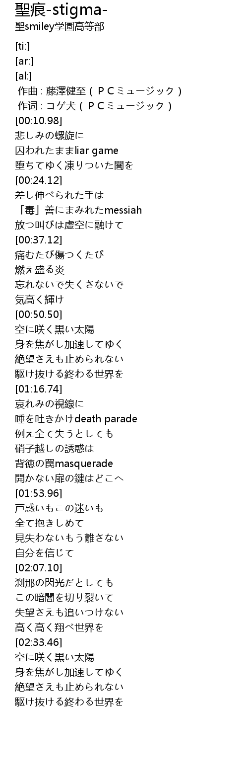 | [00:32.70] | 放つ叫びは虚空に融けて |