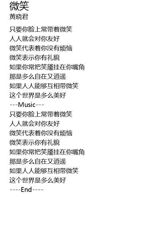 | [00:38.25] | 如果人人能够互相带微笑 |