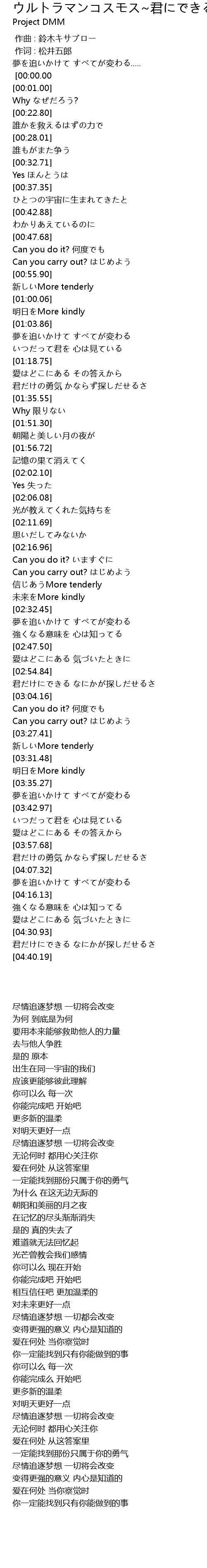 | [00:38.49] | ひとつの宇宙に生まれてきたと |