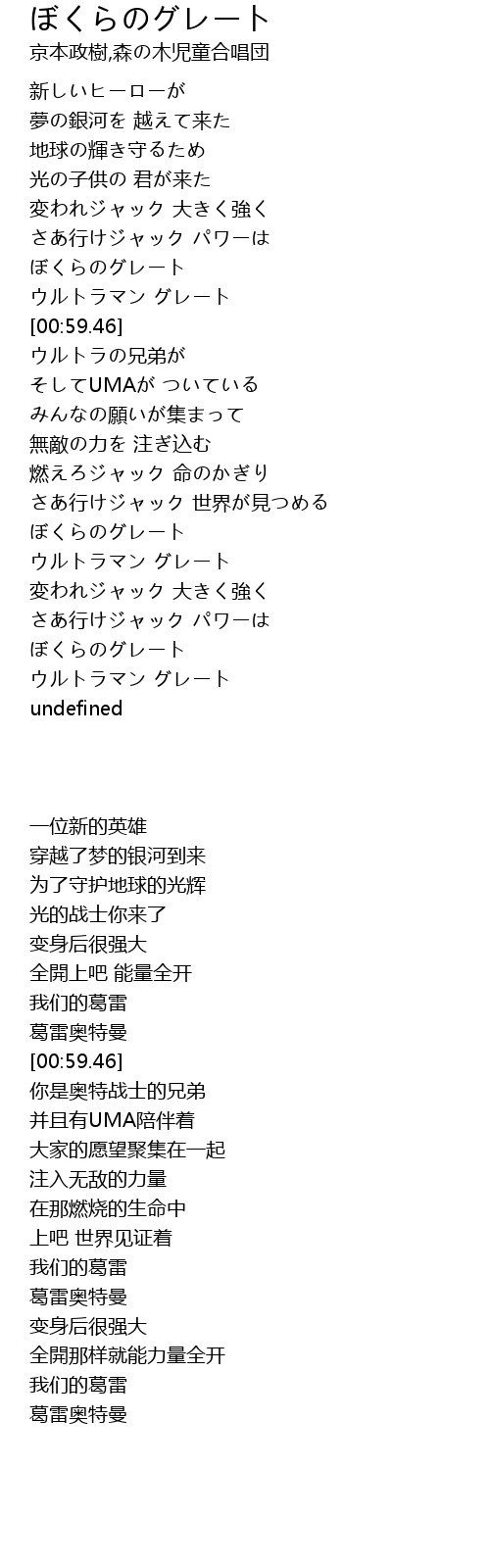 | [01:54.51] | ぼくらのグレート |