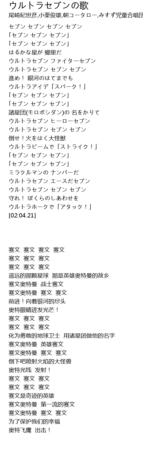 | [01:50.96] | ウルトラセブン セブン セブン |