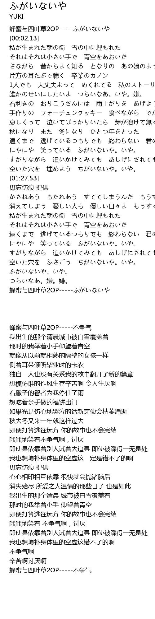 | [03:43.50] | 蜂蜜与四叶草2OP-----ふがいないや |