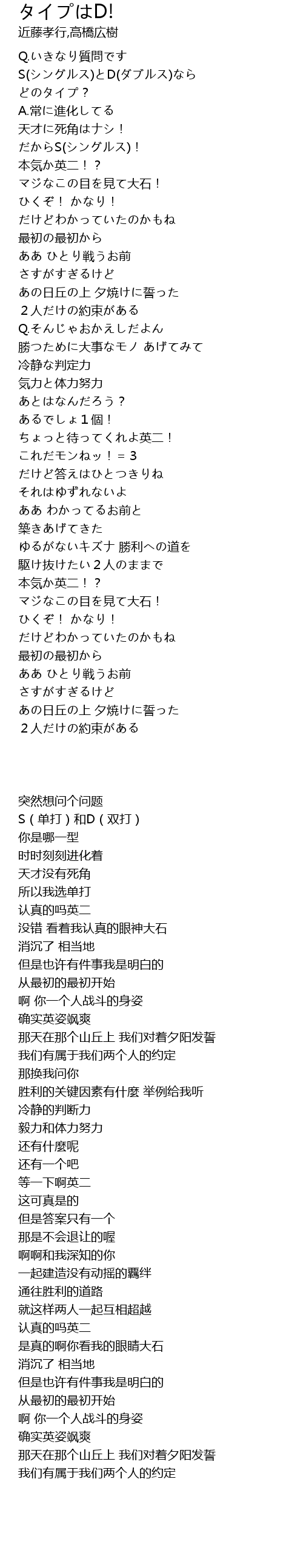 S(シングルス)とD(ダブルス)なら |