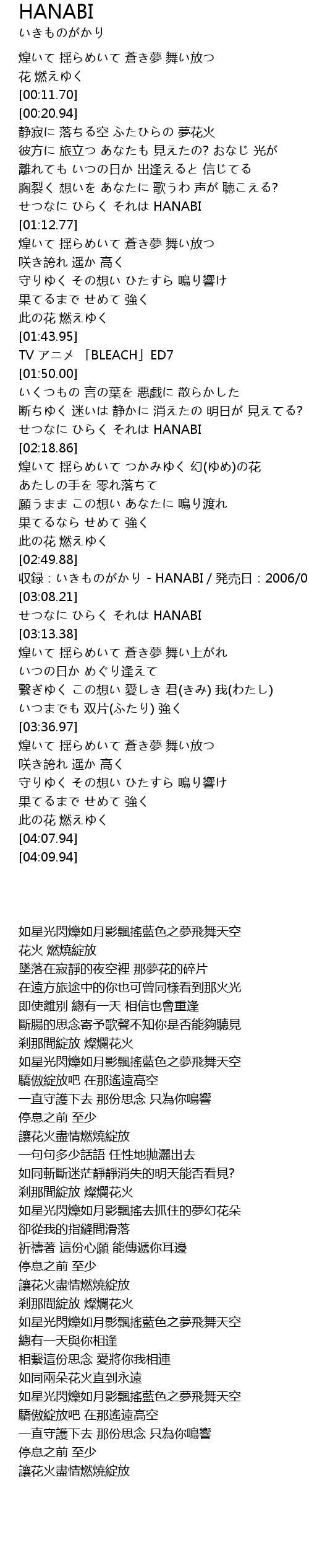 | [02:51.88] | 収録:いきものがかり - HANABI/発売日:2006/05/31 |