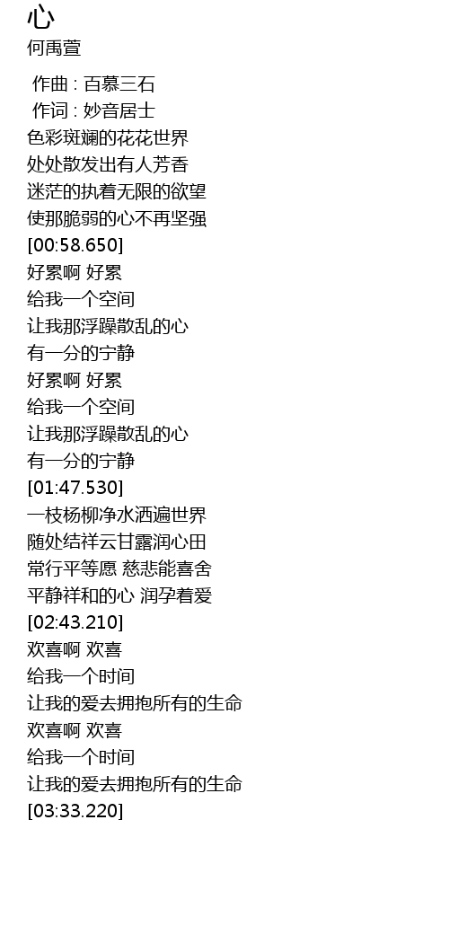| [02:32.270] | 平静祥和的心 润孕着爱 |