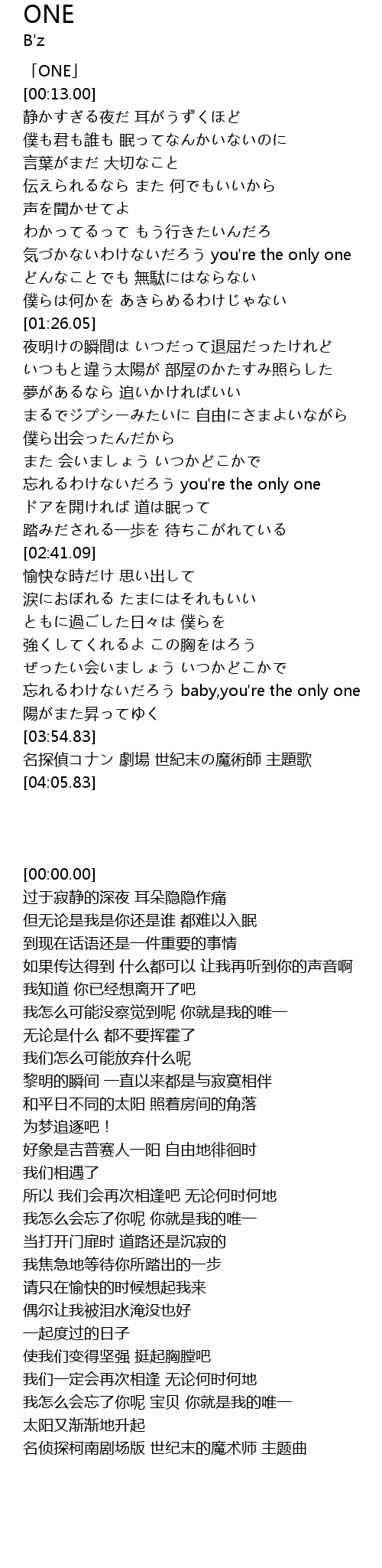 | [00:00.00] | 「ONE」 |