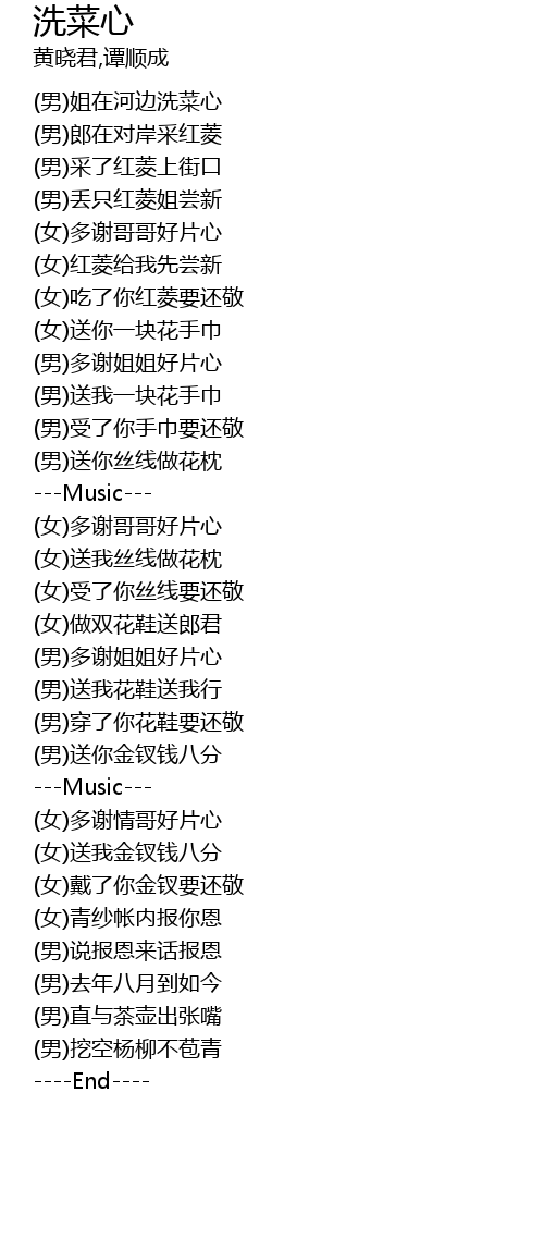| [00:09.67] | (男)姐在河边洗菜心 |