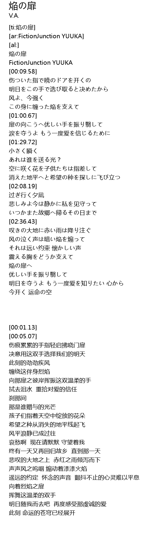 | [01:01.16] | 扉の向こうへ优しい手を振り翳して |