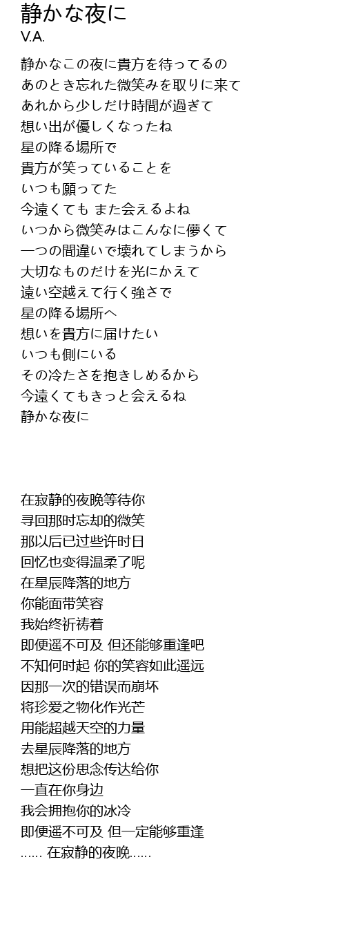 | [00:17.14] | 静かなこの夜に貴方を待ってるの |